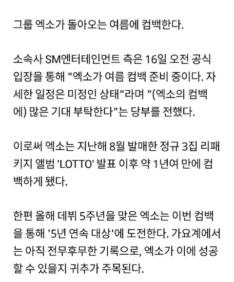 엑소, 오는 7월 컴백..전무후무 기록 세울까