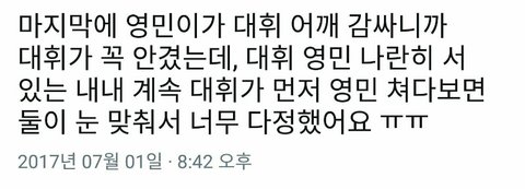 오랜만에 봐서 애틋했을거같어 ㅠㅠㅠㅠㅠㅠㅠㅠ 브랜뉴즈 다 잘되자 파이팅!! 출처 짹!