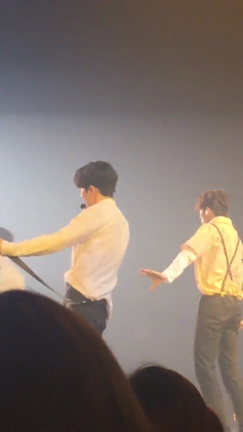 당황하지 않고 멜빵을 잡고 그 격렬한 춤을 해내는 김종현