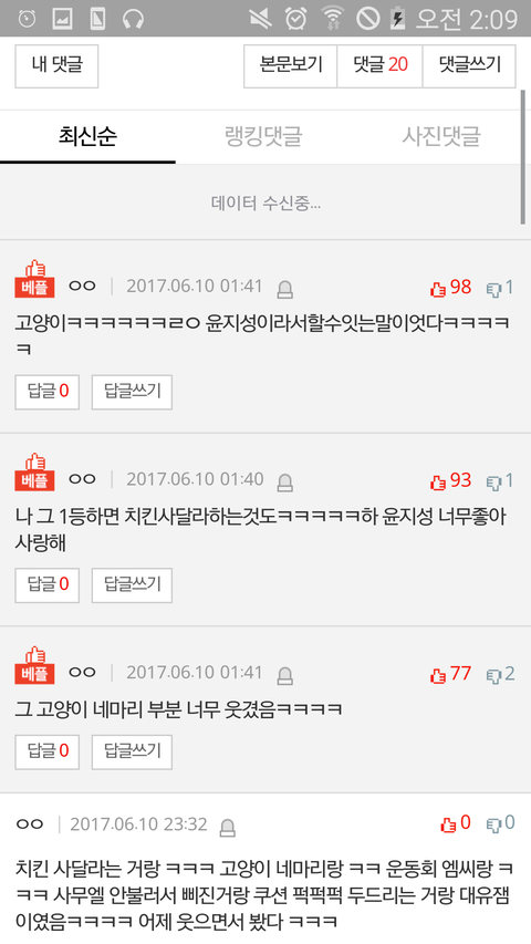 댓글 많은 톡