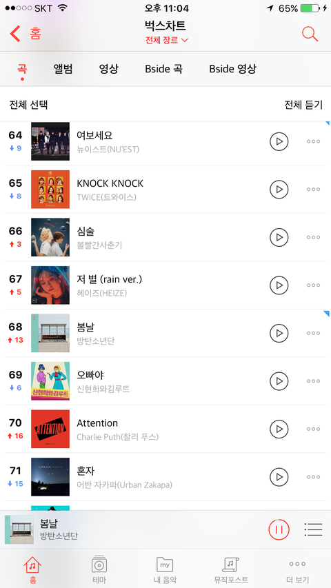 정각에 음원 순위 보고 싶어서 계속 기다림ㅠㅜ