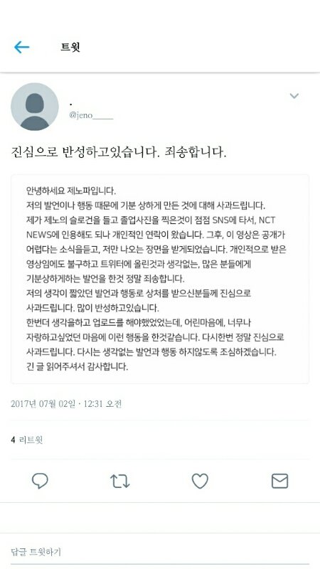 제1노1파1 사과문 올라왔네