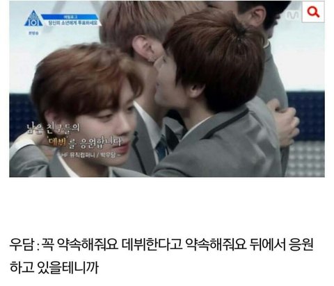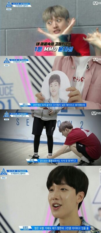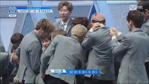 윤지성 순위 불릴때 마다 우르르 모여서 축하해주는 연습생들