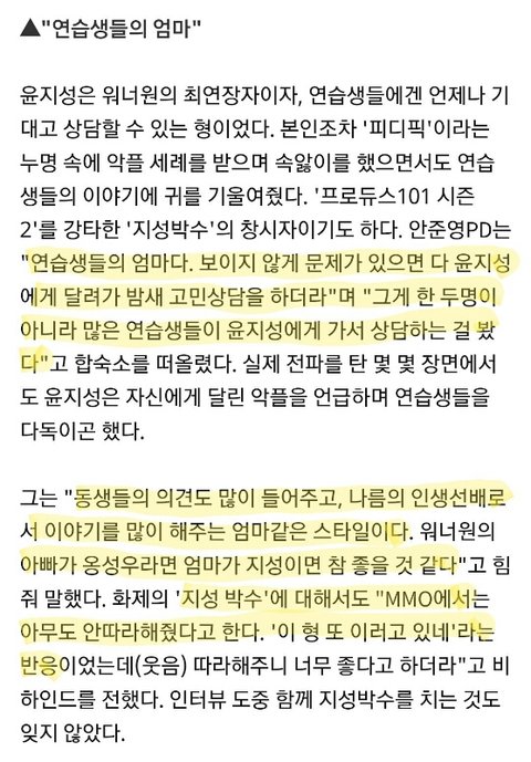 옆에서 한동안 지켜본 연습생들이 인정했고
