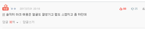 톡선에 아이돌은 얼굴 잘생긴 애들이 노래 워낙 못햏서 랩한다 이런글 떴는데 이게 베플ㅠㅠㅠㅠㅠ