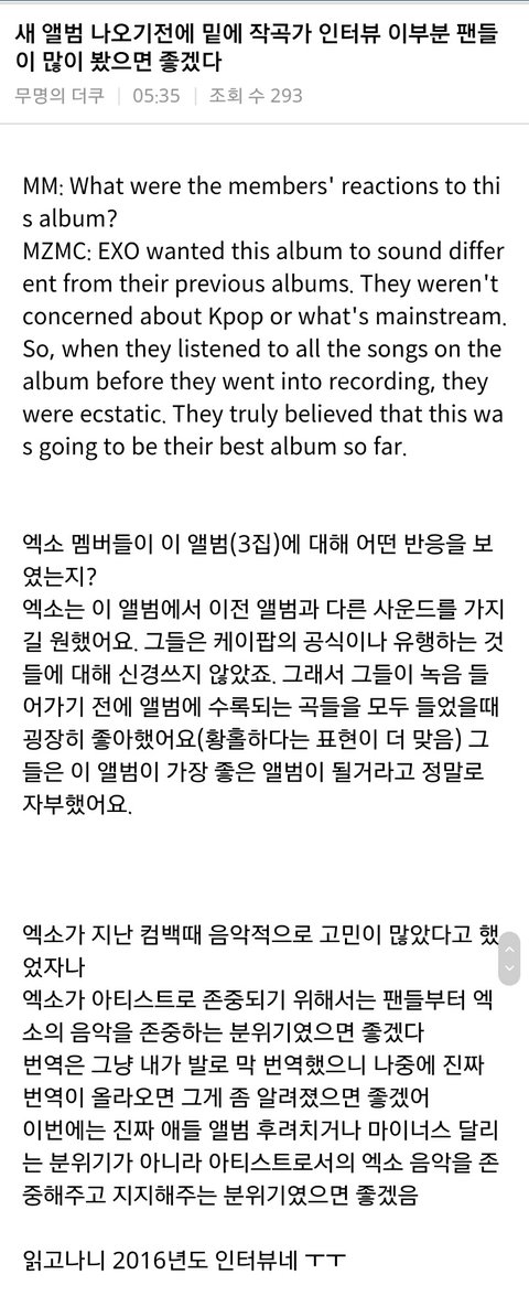 이그젝트 앨범 작곡가 인터뷰 봤냐