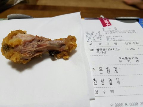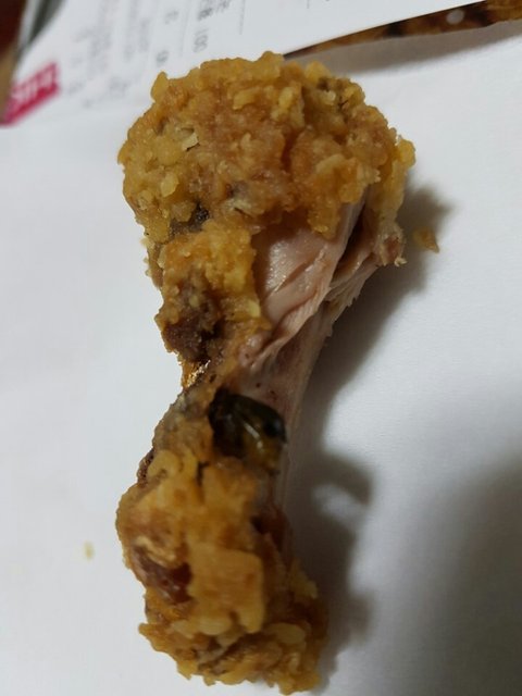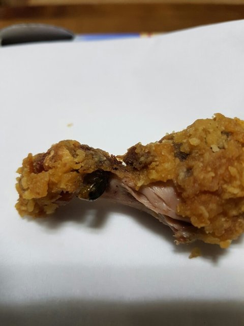 가맹점측은 치킨은 밀봉된 상태에서 매장으로 오기때문에 본사책임이라 떠 넘겼고 본사도 전화해 확인해보니 치킨조리중에 들어간 것 같다고 본사책임이 아니라 하더군요