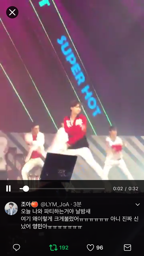 오늘밤 파티하는거야 부분들어봐 홓 대박 ㅎㅎㅎ 가까이서 찍었나버 영민이 쉼표머리도 보인다 ㅎㅎㅎ