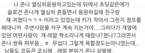 프듀콘 스탠딩 가 구역 앞사람 똥머리 때문에 안보여서 자른거라는데 죤나 소름돋아 근데 이와중에 미용가위 챙겨간거는 더 소름돋아