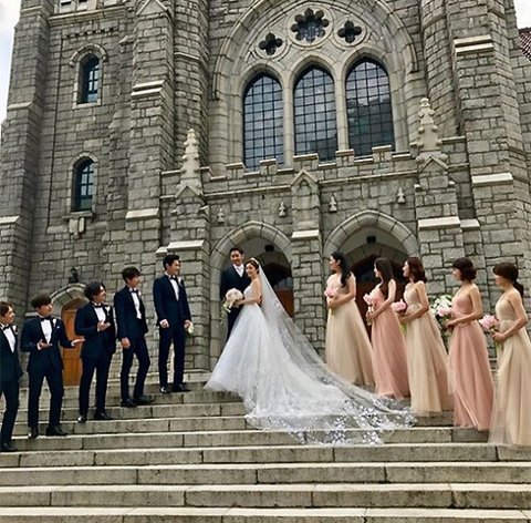 비공개식으로 교회에서 조촐하게 결혼식을 열엇음
