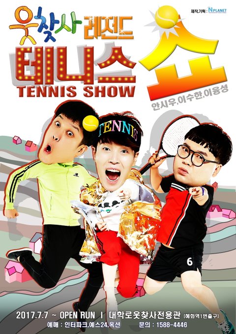 대학로 개그 공연 '웃찾사 레전드 테니스쇼'를 무료 관람할 수 있는 이벤트입니다.