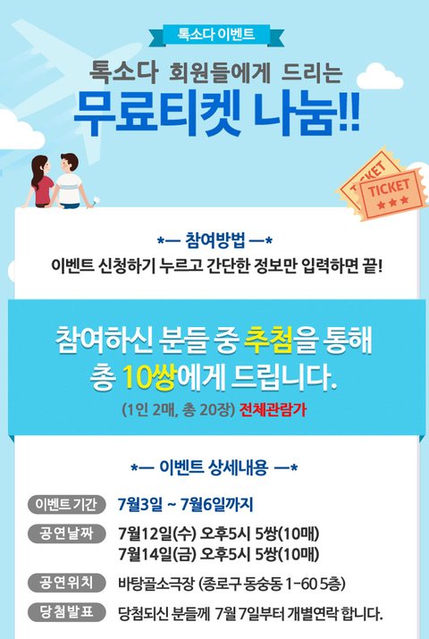 스마트폰에 톡소다 어플 설치후 이벤트 신청 가능합니다.
