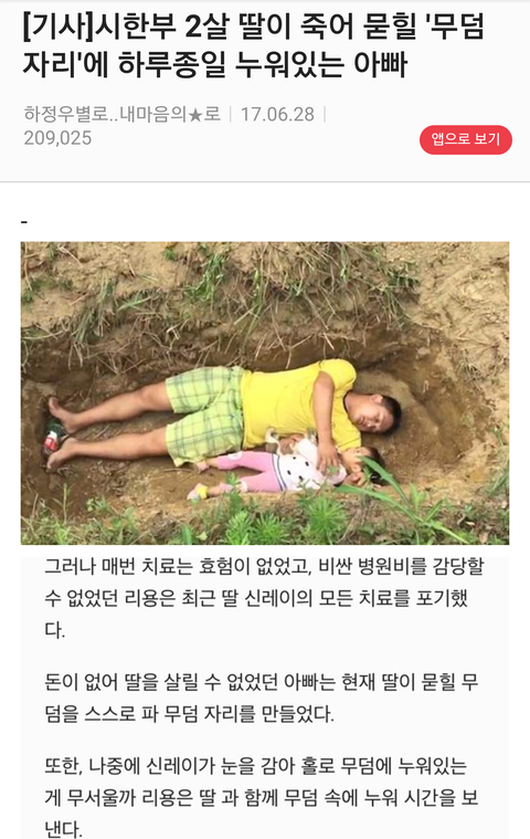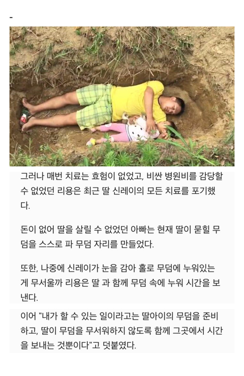 시한부 딸이 죽어 묻힐 무덤에 종일 누워 있는 아빠
