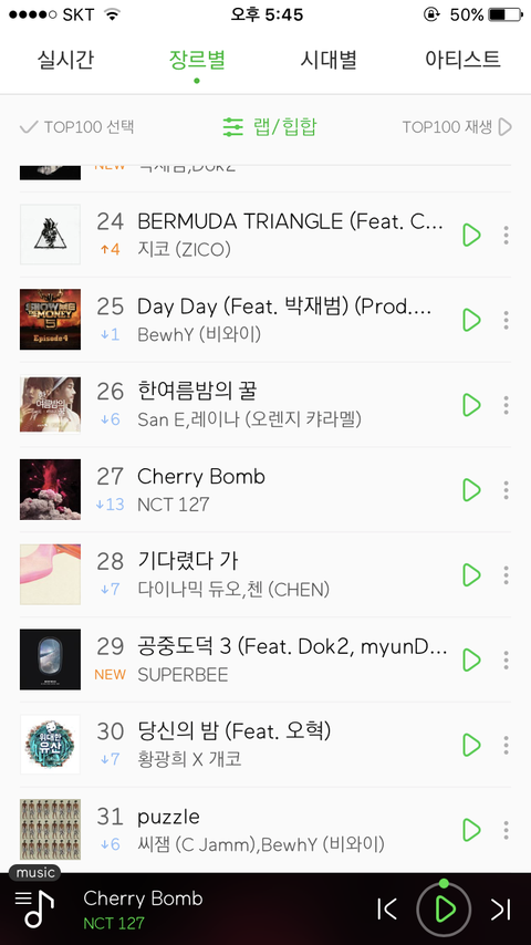 멜ㄹ 랩힙합 차트에 있는거 알지?
