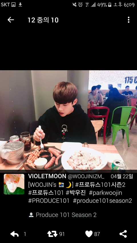 그리고 우진이가 고개를 떨구고 소시지를 집는 사진은 변현1ㅁ 트위터에 올라오지도 않음.. (참고로 저때는 변현1ㅁ이랑 밥먹으러 간 때임)