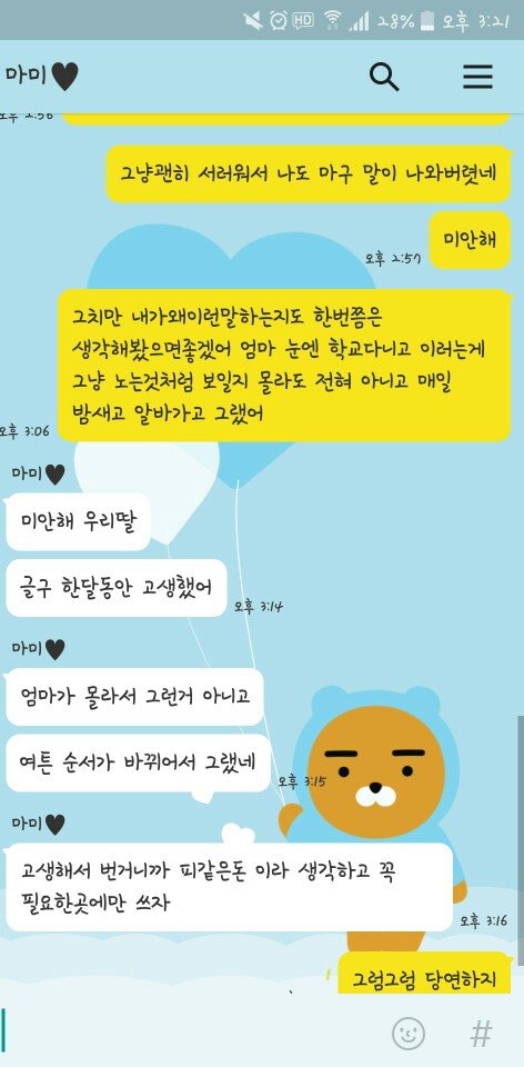 제가 오늘 너무 억울해진 건 엄마의 카톡 때문입니다.