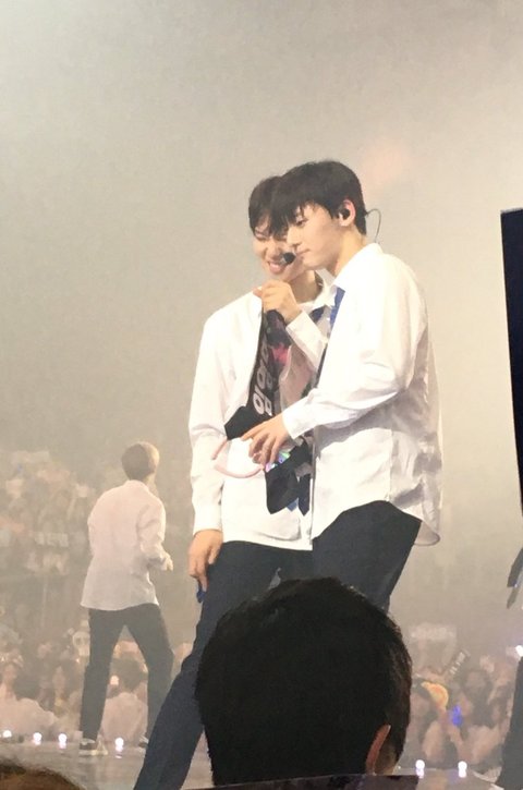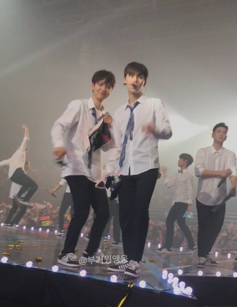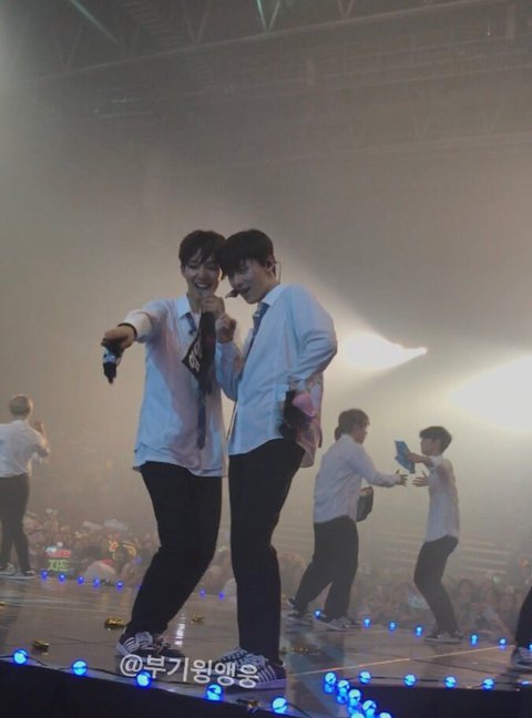둘이 어깨동무 하고 얘기하고 ㅠㅠ 무대 아래로 같이 내려가자고 하는거래완전 학교에서 인기많은 선배 오빠들 지나가는 그림 아니냐...
