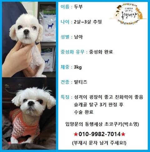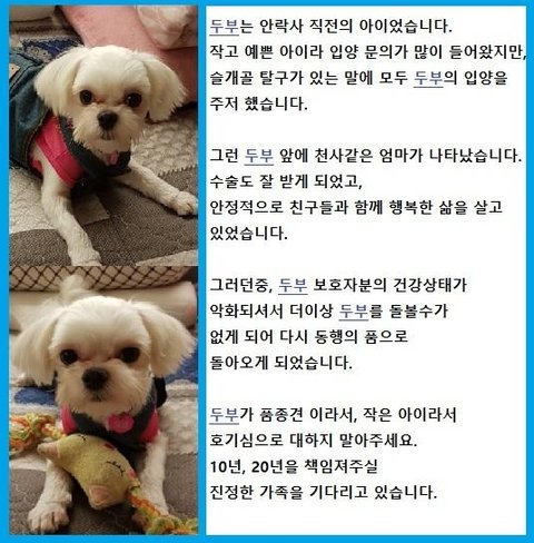 #강아지 #반려견 #유기견 #말티즈 #사지말고입양하세요 #입양 #입양홍보 #두부 #가족 #사랑