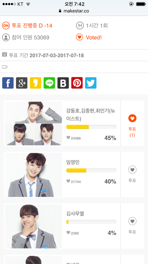 얘들아 50프로 훌쩍 넘겨버리자 우리 화력을 보여주자ㅠㅠ