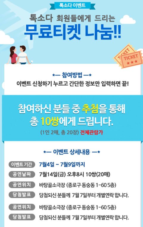 소모임 어플 '톡소다'에서 준비한 이벤트입니다.