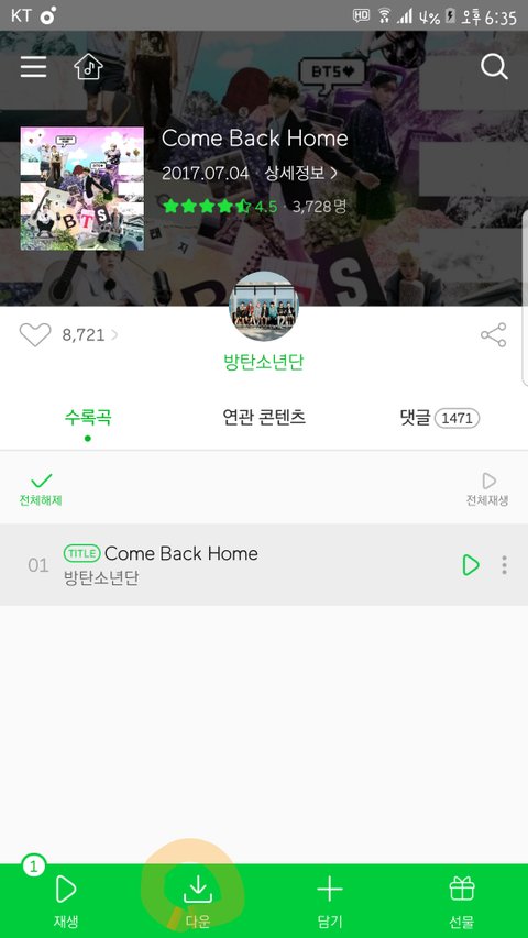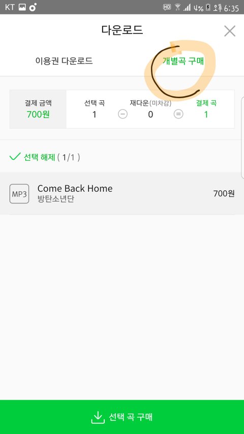 이렇게 한다음 다운로드 한곡은 삭제하고 노래 다시넣어서 스밍돌려줘!!@!