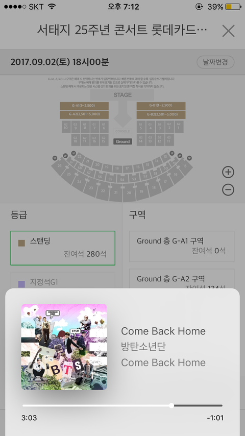 어디까지가 스탠딩이고 어디부터가 좌석이야 ? (이삐톡이면 옮길게 , 밑에꺼는 내가 스밍을 돌리고 있다는걸 어필하고 싶었어 .. ㅎㅎ )