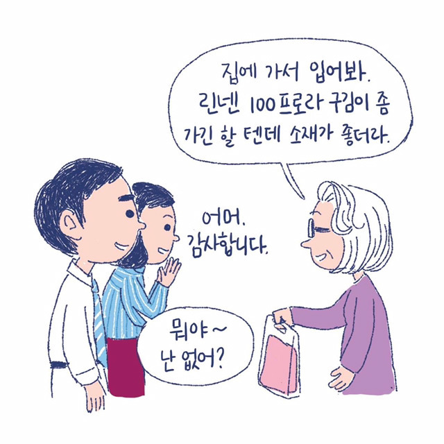 입장 바꿔서 생각해보세요 처제 남편은 보양식 직접 해다 먹이면서 나한텐 출장간다니까 장모님이 와서 출장을 간다고? 그럼 우리 새색시는 밥 굶어야 하는데~? 하며 은근슬쩍 눈치주고 사위 선물이라며 앞치마 덜렁 한 장 주면 어떨 거 같음? 앞치마 지 아들 건 없고 아내한테만 주는 이유가 뭐겠냐고.. 그리고 어느 부분이 서운했다고 다 짚어줬는데 그래도 선물 줬잖아~ 이건 뭐냐 개같이 굴어도 선물 줬으니까 장땡이라는 건가