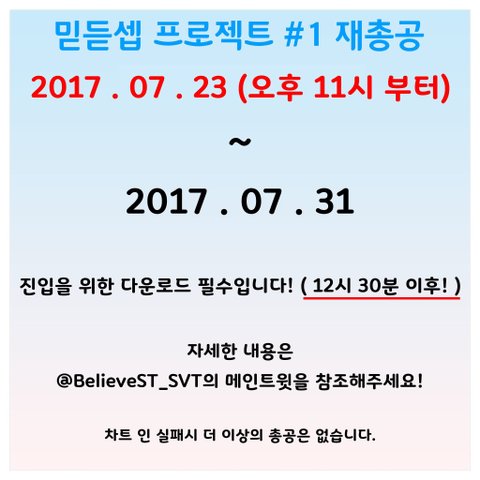 이 총공이 실패한다면 더 이상의 총공은 없어 ㅜㅜ 이유까지 다 읽어 보고 꼭 참여해 줬으면 좋겠고 다 커뮤 하는 캐럿들은 사진 들고 가서 그쪽에도 홍보해 줘! 부탁할게 ㅜㅜ