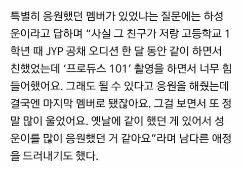 ✔️ 성운 - 프로듀스 101 시즌 1 연습생 출신 김작은희 인터뷰 중 성운 언급