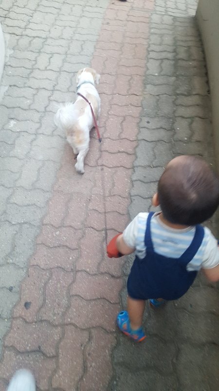 오늘은 친정 개님과 꼭 산책을 해야겠다고 고집을 부렸어요.