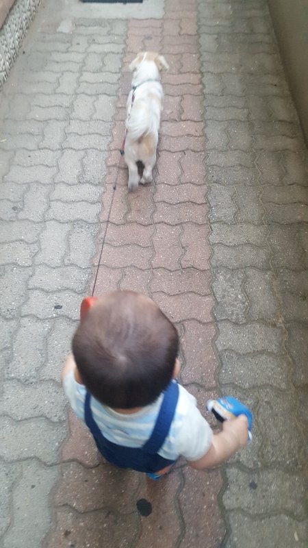 아이도 개님과 함께가 아니면 의미가 없다며 목줄을 들고 드러누워버려