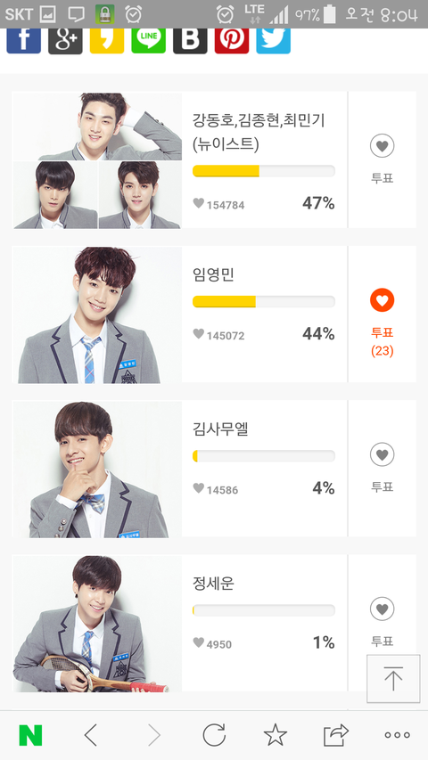 사진보고 기사보고 좋아요 누르고 투포 8회하고 미팅가~~♡