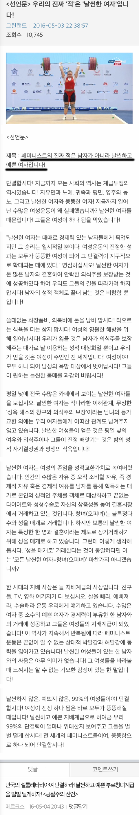한남한남 거리며 자기는 한남과 결혼을 안할것이니 니들은 번식탈락이다 라고 외치지만