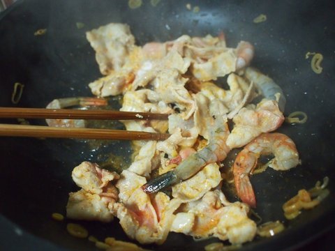 오늘은 맵게 갈거니까 고추기름에 파 조금 볶다가 삼겹살 볶고,