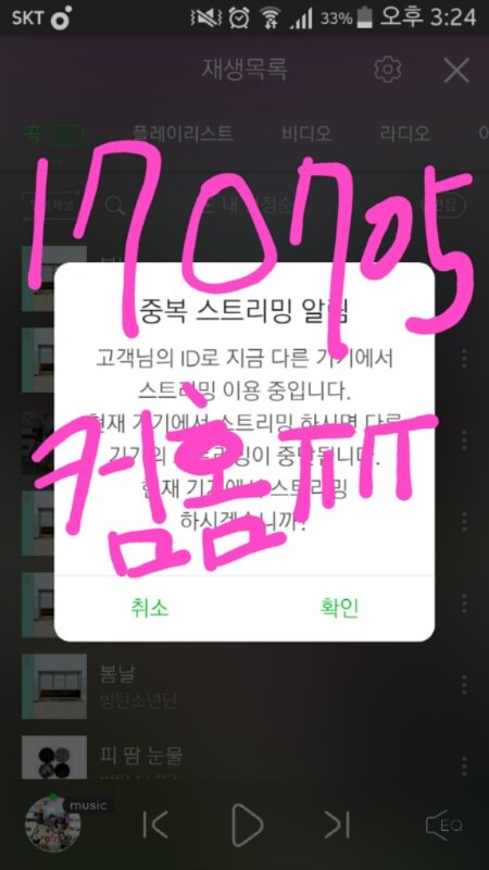 다른 거 다 올라가는데 신곡이 저러면... 스밍리스트 새로운 걸로 안 쓰거나, 다운받은채로 스밍 돌리고 있거나 암튼 잘못 스밍하고 있는 사람들이 많은 것 같아.