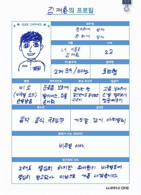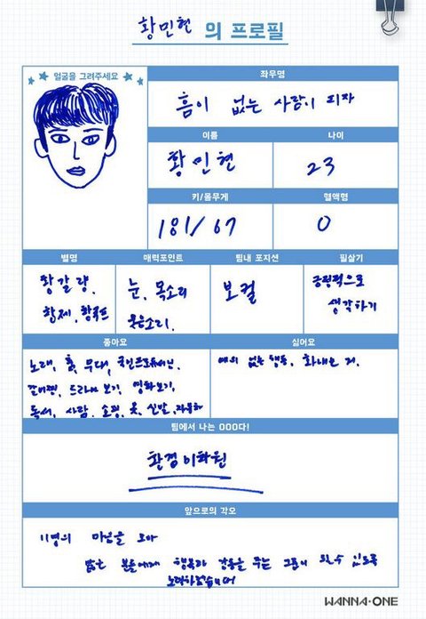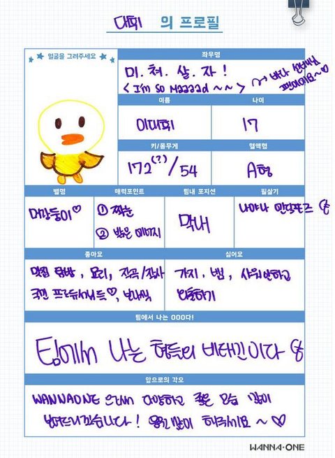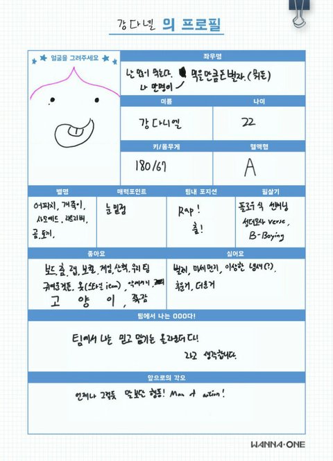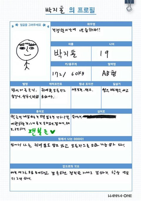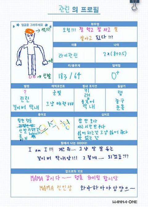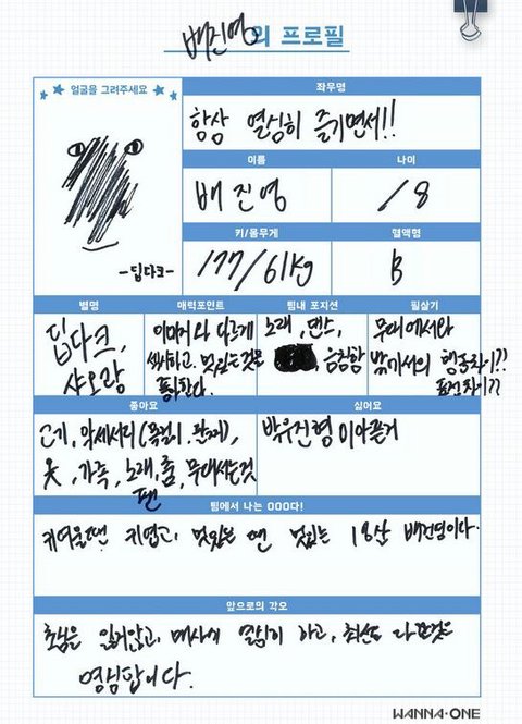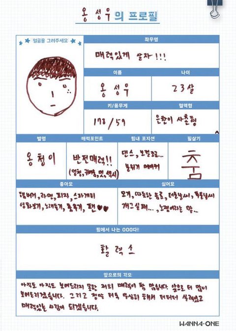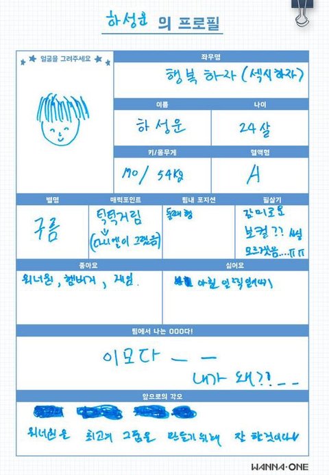 워너원 프로필 (웃김)