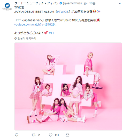 워너재팬오피셜 트와이스 앨범판매량 20만장 돌파 ㄷㄷ