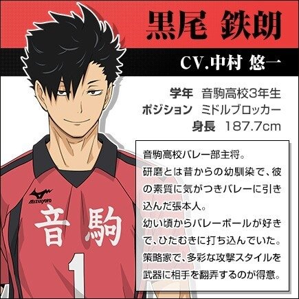 원작에서도 정말로 매력 넘치고 잘생겼던 쿠로오ㅠㅠ 근데 공식 쿠로오 굿즈 중에서는 원작 그림체와 비슷하게 나온 경우가 거의 없었다ㅠㅠ 턱이 길어졌다던지...하아...근데 밑에 사진 쿠로오 공식 일러 치고 되게 잘나온듯!! 물론 쿠로오는 어디에서나 잘생겼었지만.. 으.. 하이큐 4기나 기다리자..