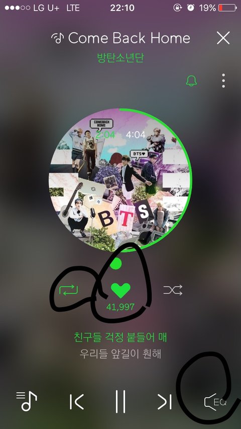 재생화면 오른쪽 하단에 EQ꺼야해