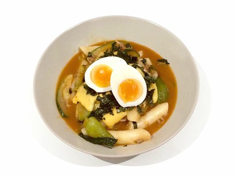 양파 마늘 애호박 청경채 치즈 김이 들어갔어요.