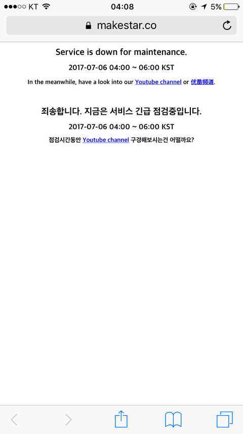 ㅁㅇㅋㅅㅌ 지금 서비스 점검중이래 4-6시까지!!