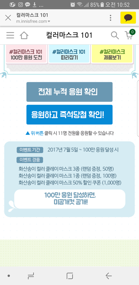 투표 아니고 '응원하고 즉석당첨 확인'이걸로 바꼈어