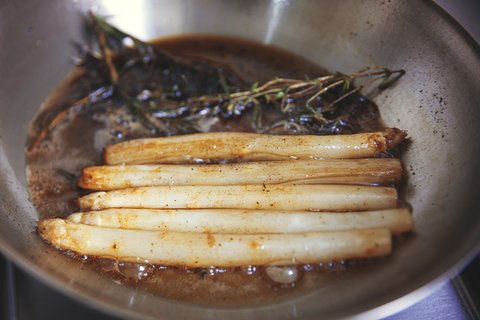 3. 화이트 아스파라거스와 양송이를 곁들인 스테이크