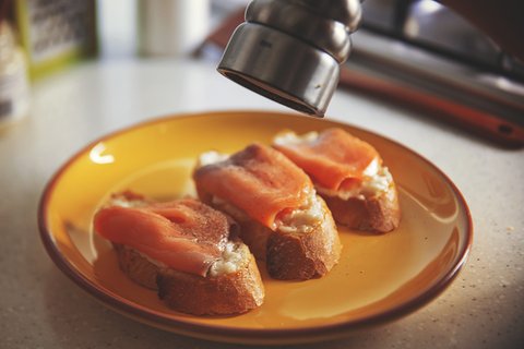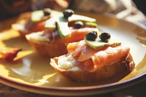 6. 케이퍼와 아보카도를 곁들인 마늘맛 연어 부르스케타