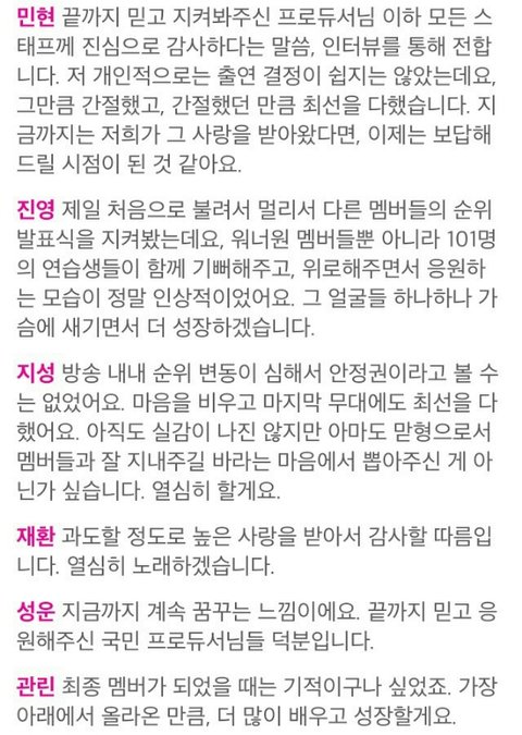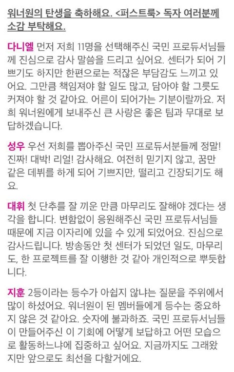 *워너원 1룩 인터뷰*