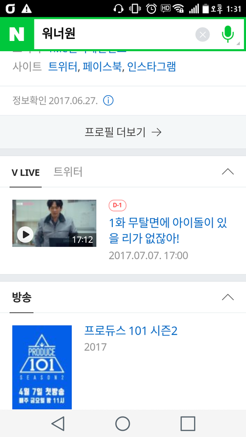 ㄴㅇㅂ에 워너원치면 v앱뜨는데 이거머임?