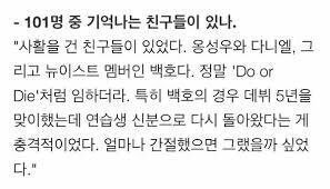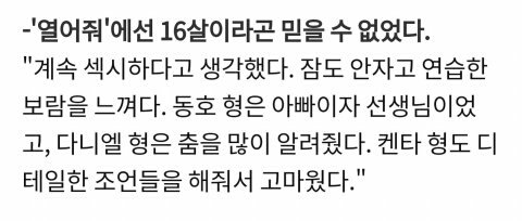 애들이 진짜 연생들사이에서 되게 큰 기둥같은 역할을 했겠구나 싶음.. 솔직히 자기 6년차 데뷔했었다고 좀 으시대거나 어깨힘주고다녔으면 저런 미담들이 방송끝나고 우수수나오고 여기저기서 언급해줄리가없음