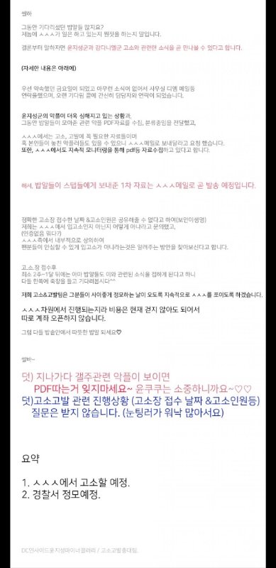 소속사 피셜로 조만간 고소소식 볼수있을거라하니