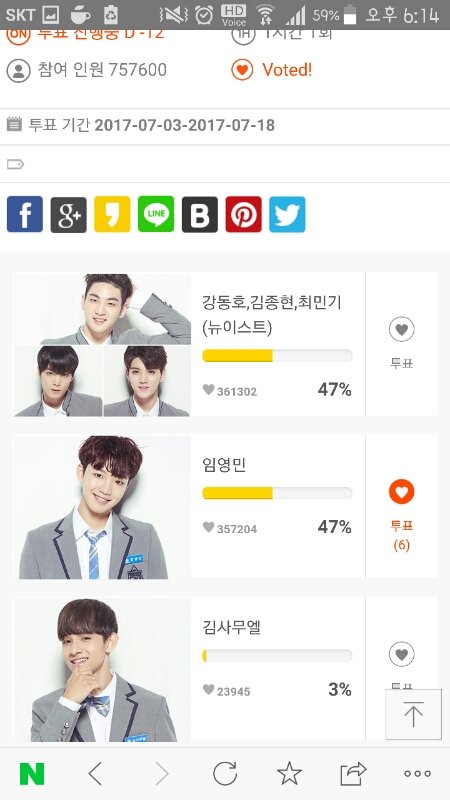 대휘 좋아하지만 난 브랜뉴애들 다 아끼고 사랑해서 항상 영민이 투표해준다!ㅎㅎ 그러니깐 브랜뉴맘들 우리 영민이 많이 투표해줘ㅠㅠ 가입도 쉽고 1시간에 한번씩 가능해! 메이크스타라고 네이버에 치면됩니다 부탁합니다♡♡