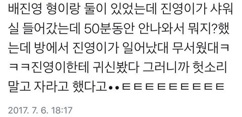 ㅅㄴ피셜ㅋㅋㅋㅋㅋㅋㅋㅋㅋㅋㅋㅋㅋㅋㅋㅋㅋㅋㅋㅋㅋㅋㅋㅋㅋㅋㅋ 서노: 형 나 귀신봤어.. 진영: 헛소리하지말고 자 ㅋㅋㅋㅋㅋㅋㅋㅋㅋㅋㅋㅋㅋㅋㅋㅋㅋㅋㅋㅋ